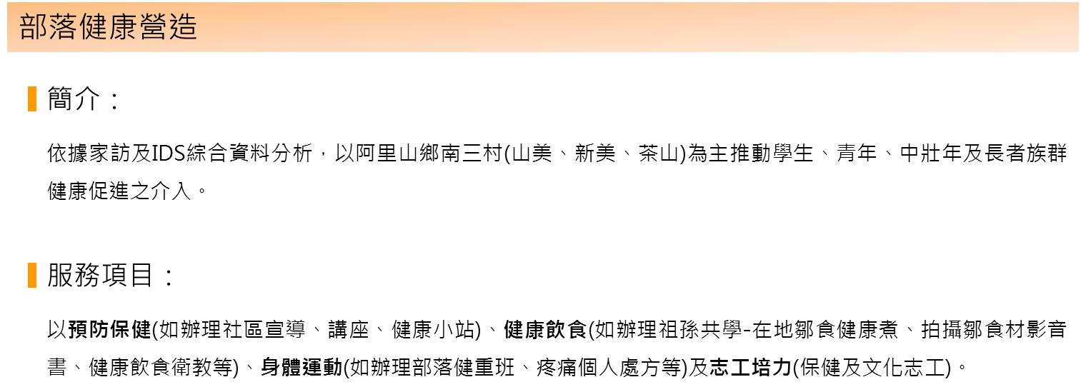 嘉義縣阿里山鄉南三村IDS巡迴醫療