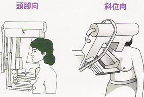 .左右兩側乳房各要照兩張 X 光片,分別為頭腳向(由上往下照)及斜位向(由側邊照)。