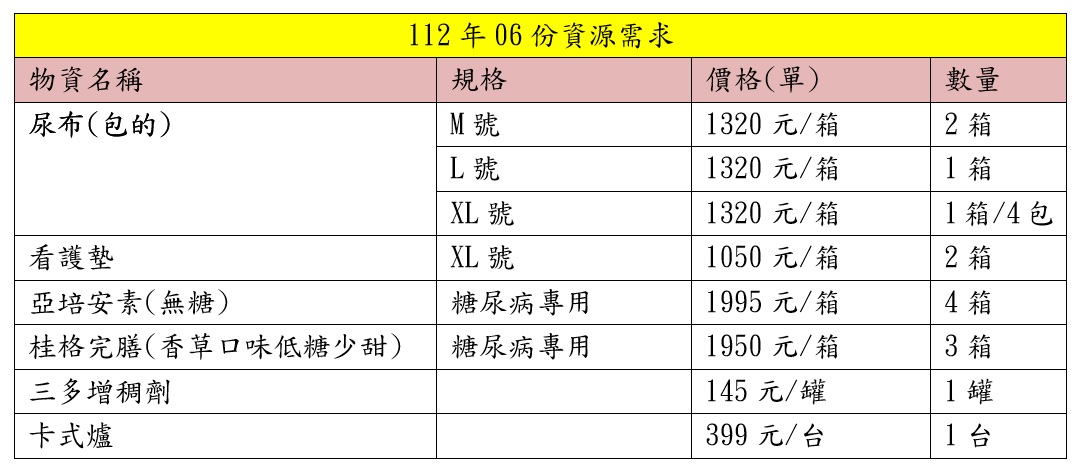 有著一群長輩及身障者,需要您我的愛心捐助(贈),透過社工專業評估,讓大家看見他們的需要,也願您的愛心在他們的需求上看見奉獻的愛。