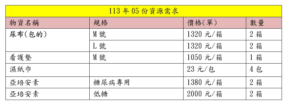 113年度05月資源需求統計