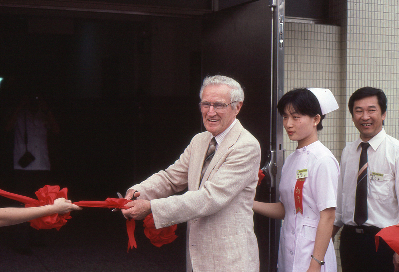 1985年10月22日戴德森醫師特地返台親自為嘉基綜合大樓剪綵。