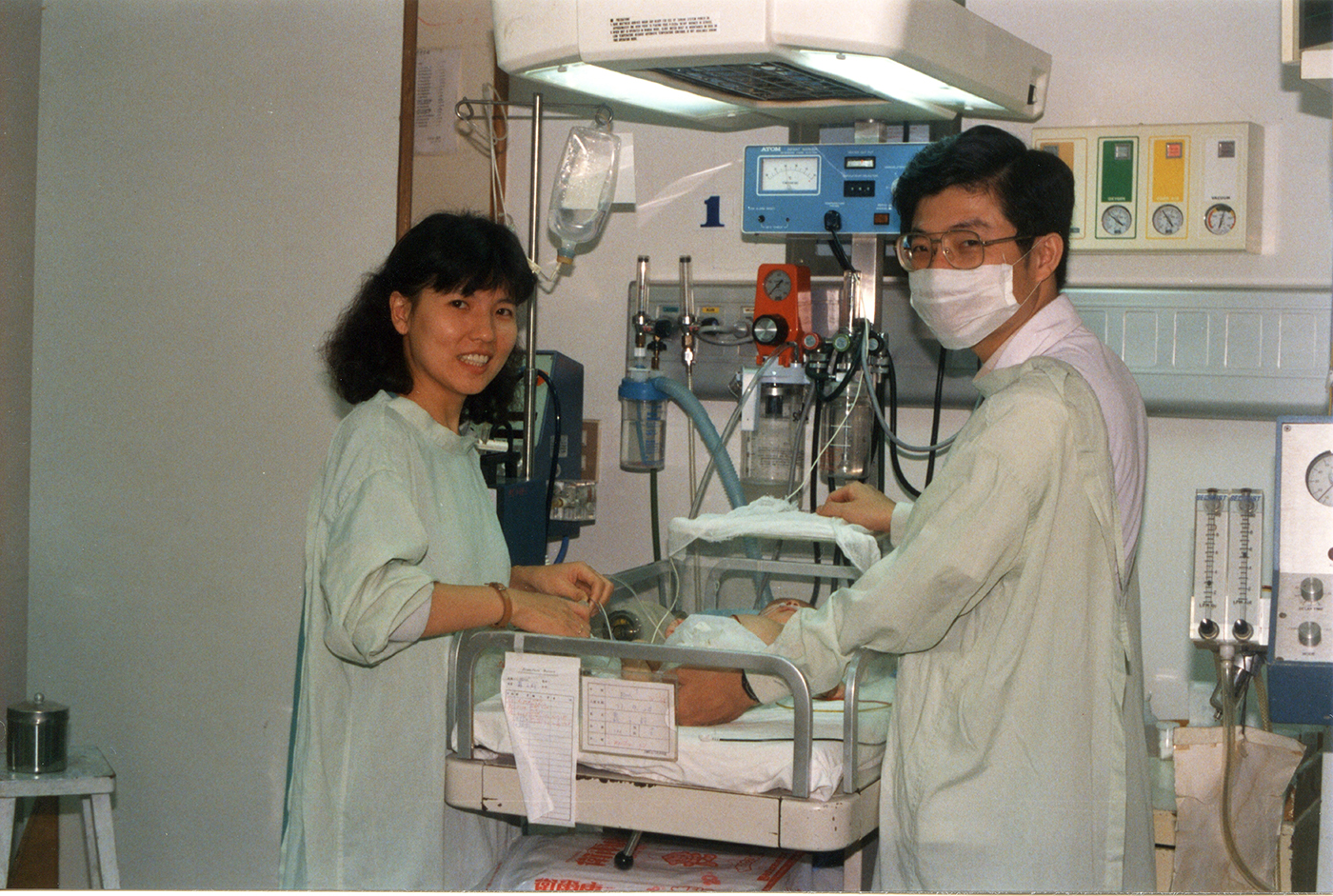 1988年兒科加護病房(PICU)醫護同仁,左為陳冠分。