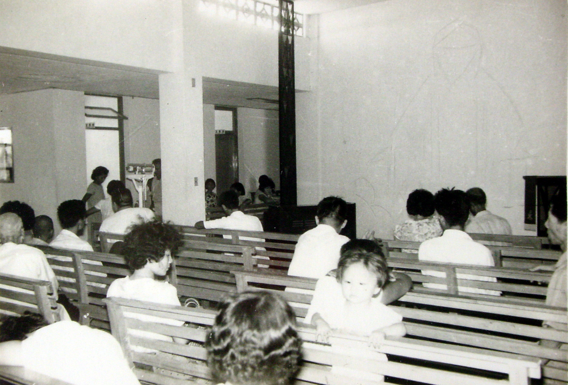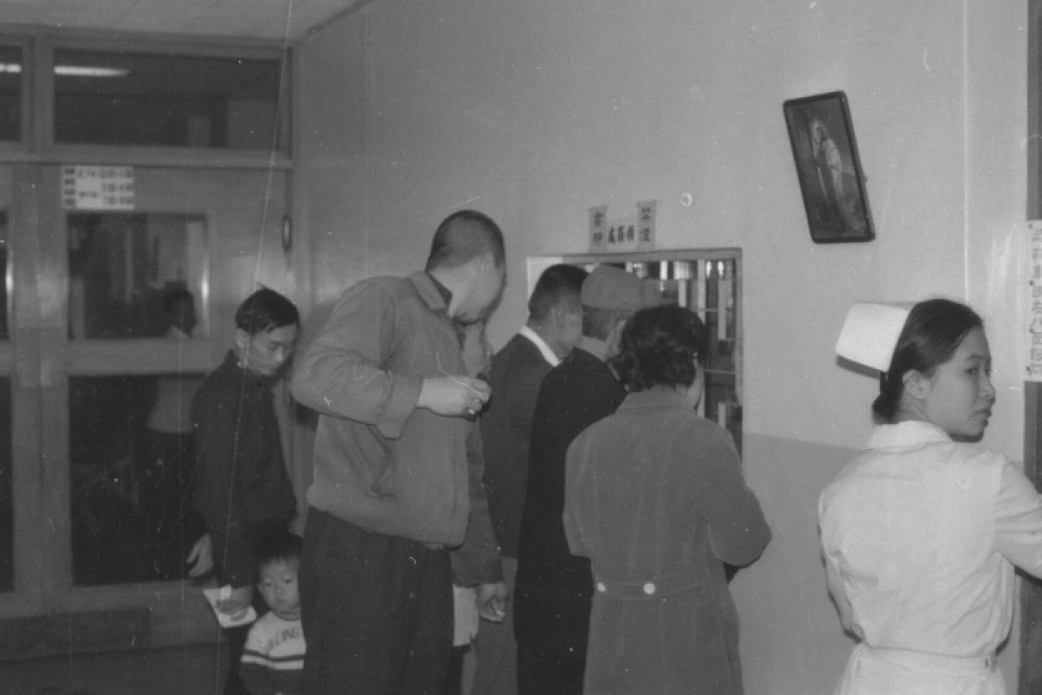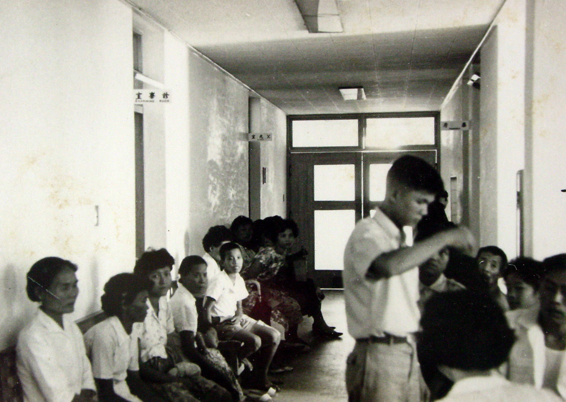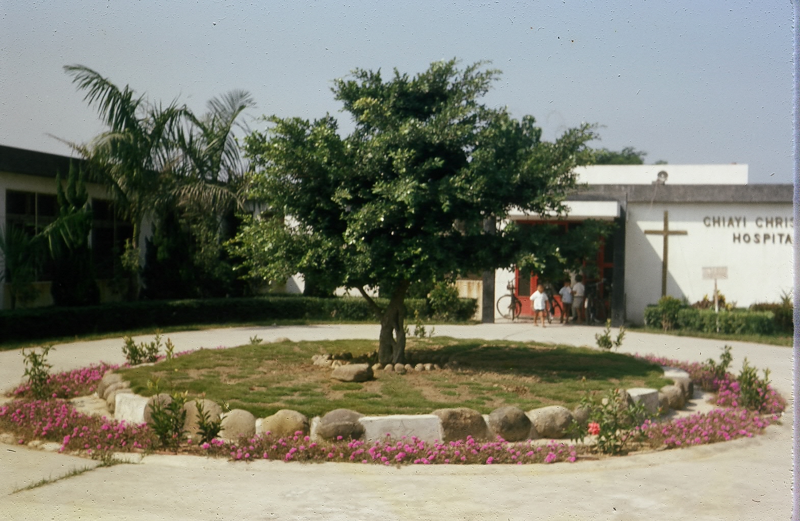 1962年四月29日落成的嘉基第一期工程規劃的門診區,順著大門前的榕樹進入,位在大門右側為掛號室,沿著右邊有好幾間診察室、治療室。民眾等候看診時則有傳道同工安得生教士透過法蘭絨掛圖講說聖經故事,進大門左側為收費室,中間大廳平日為候診室,民眾在此等候領藥,週日則成為教堂。