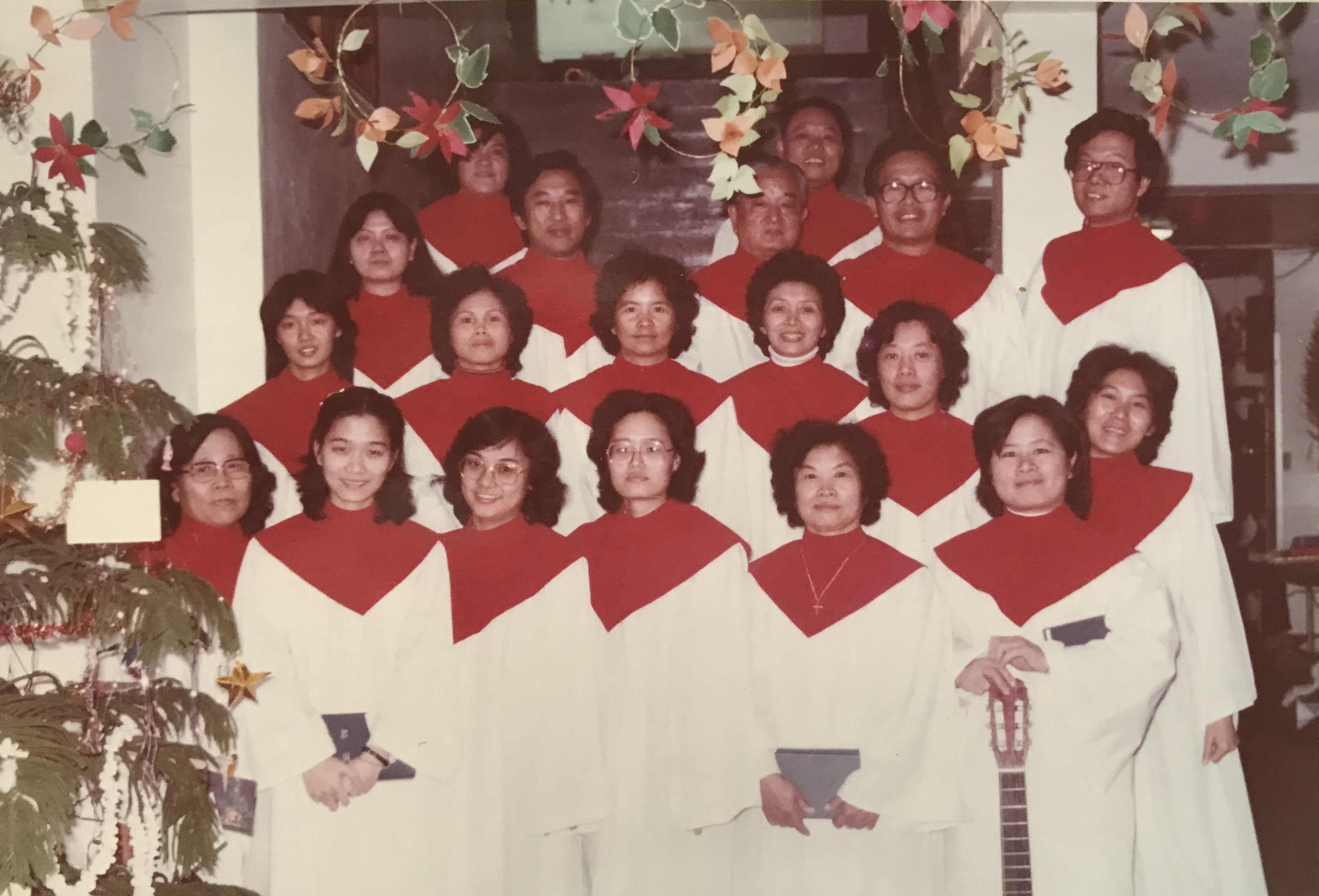 1982年嘉基詩班聖誕節獻詩,詩班指揮張耿端(第三排右一)