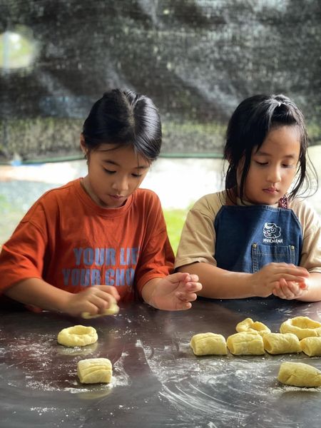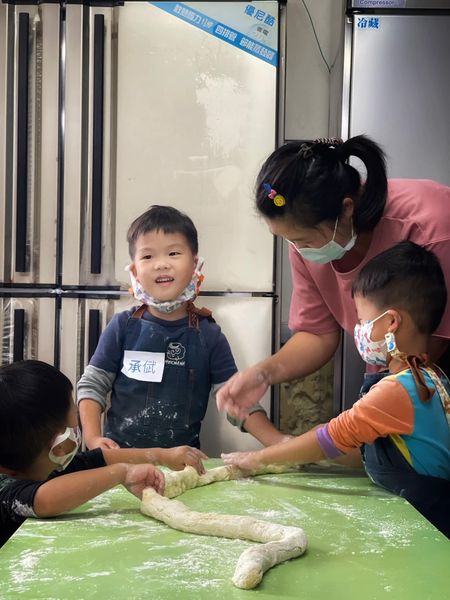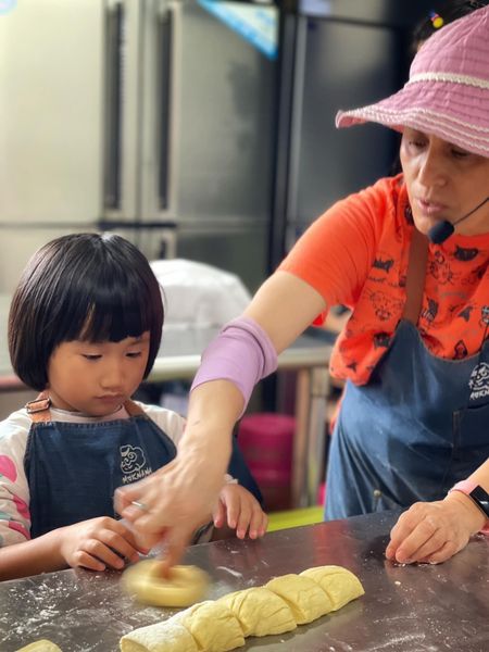 #中秋烘焙小能手」活動當中,孩子們與家長們一起動手製作了自己的甜甜圈。