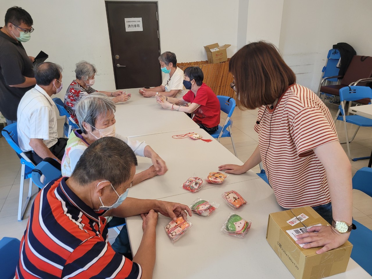 至今社照C 據點的長輩與失智據點的長輩搭配端午節慶、母親節一同學習手作課程,每月的慶生活動讓老人家受竉若驚地感動不已,消防宣導實習時失智長輩一馬當先想要親自體驗演練,這些活動讓兩個據點長輩激盪出不同的火花及學習動力,想不到「老老共融共學」也能發展出意外的據點共好果效,串起社區據點愛的連結。說明的文字。