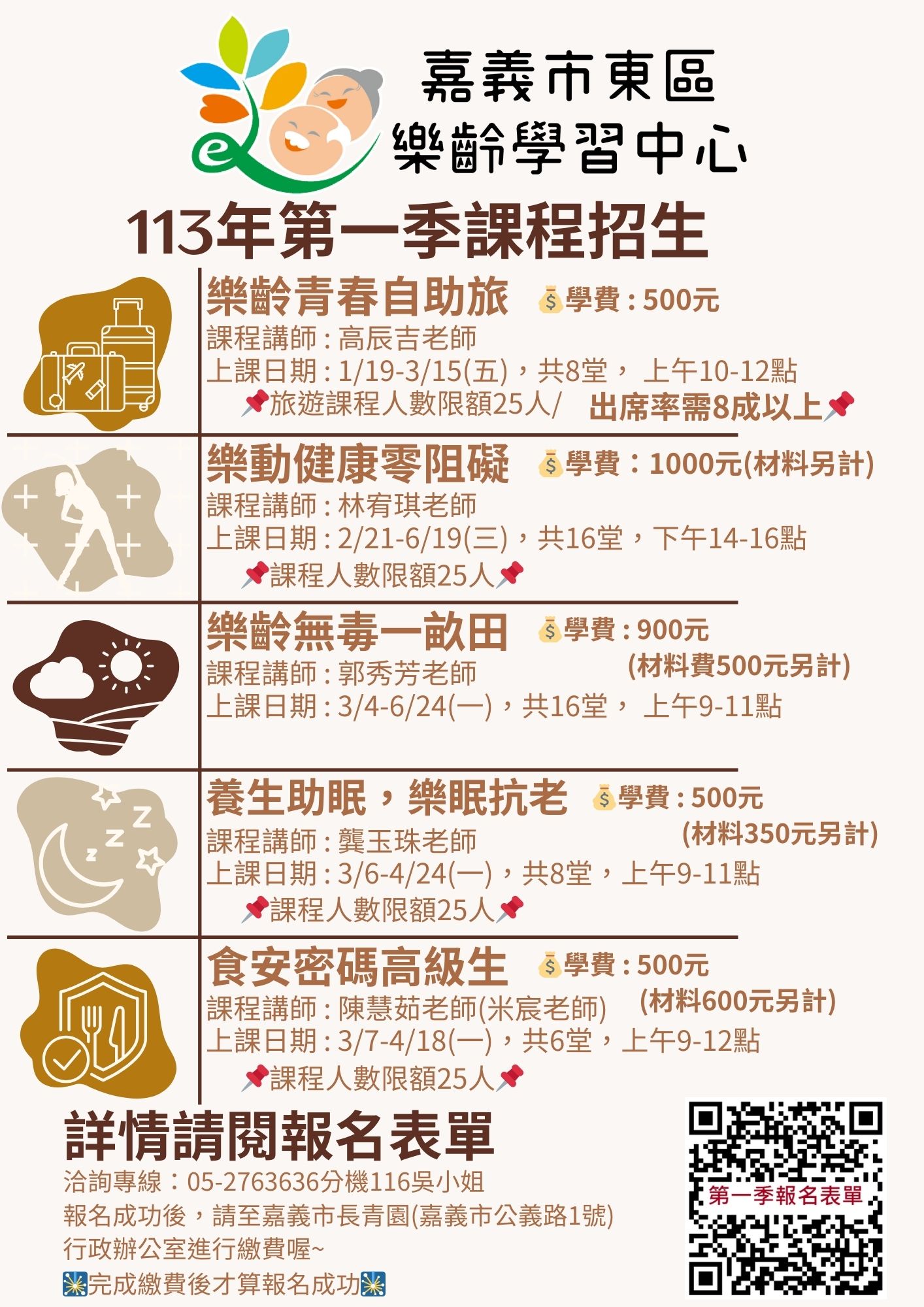 🔗113嘉義市東區樂齡學習中心第一季課程招生報名表