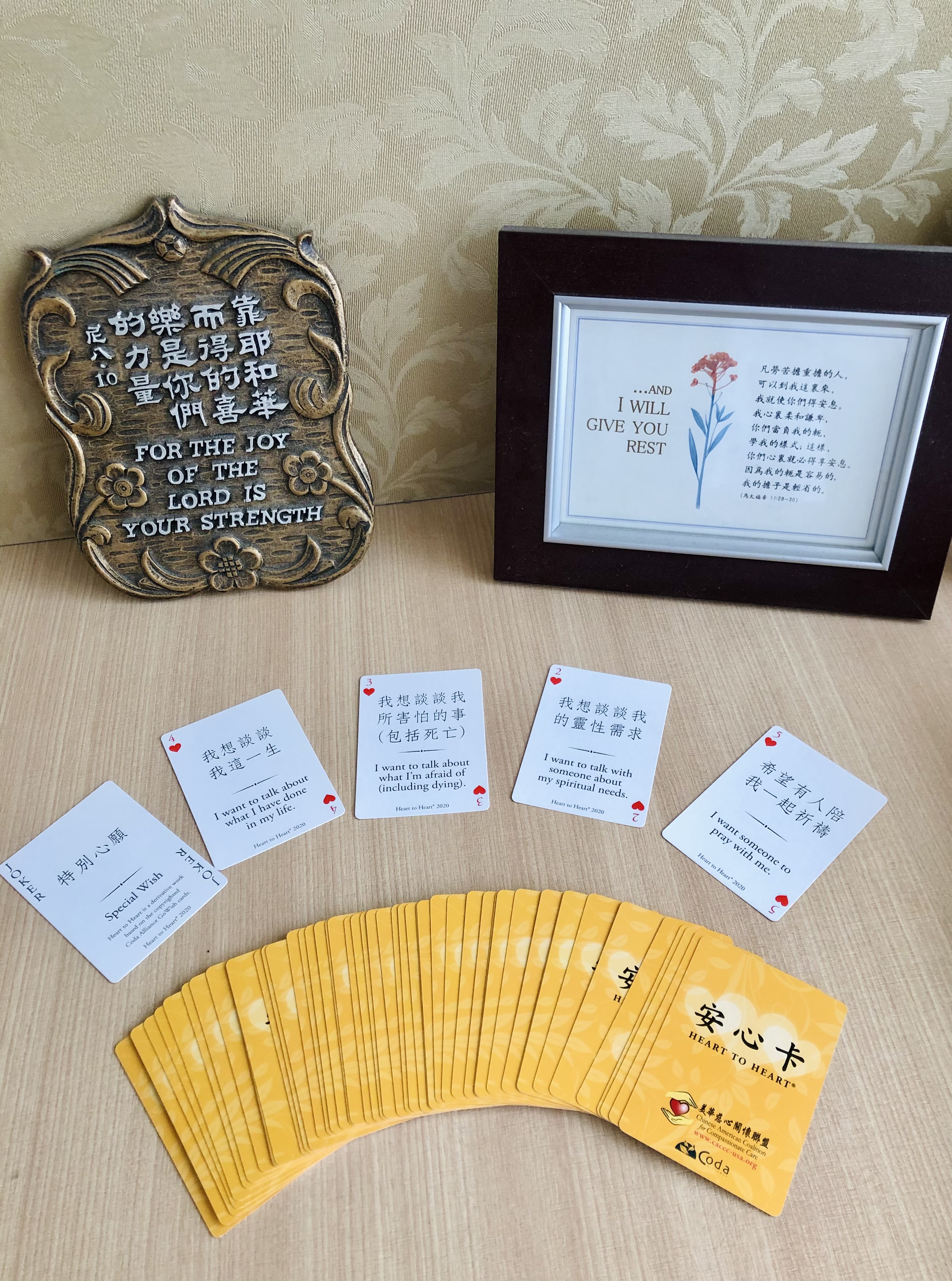 後來我從太太的口中瞭解自阿祥轉進安寧病房後,對未來感到無盼望,還未能接受自己的變化,患病後的阿祥情緒起伏甚大,太太經常受到他的影響,於是我決定下次去探視時帶領阿祥進行安心卡活動。