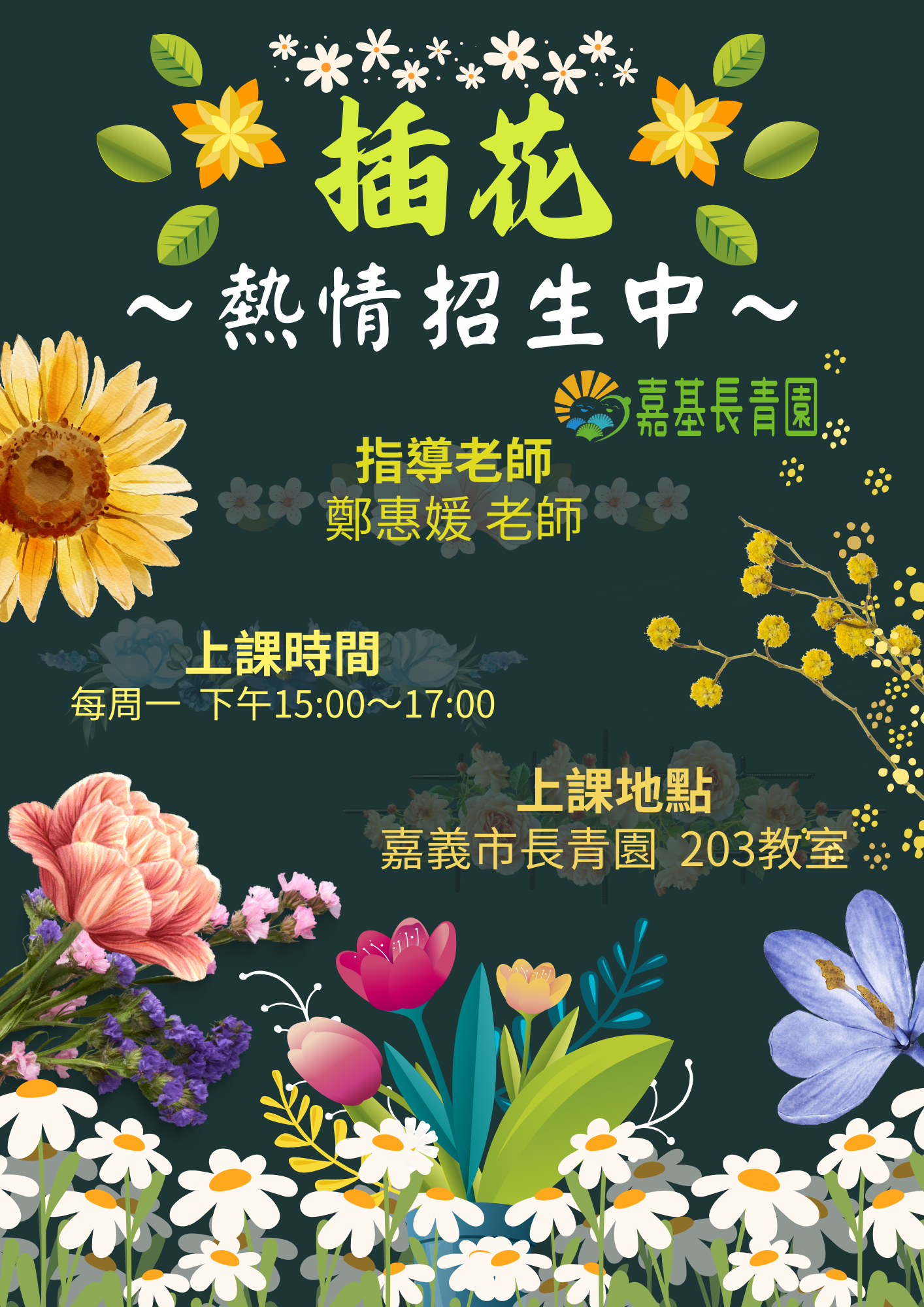 113年度長青學苑課程 插花課 熱烈招生中😊🔎注意事項:個人報名已開始受理報名🙌請於平日上班時間 🕰上午09:00~12:00、下午14:00~17:30到長青園一樓的📍行政辦公室 繳費報名喔❗報名時須攜帶身分證正本,以及學費❗如有任何疑問,也歡迎電洽☎️05-2763636 分機117/111