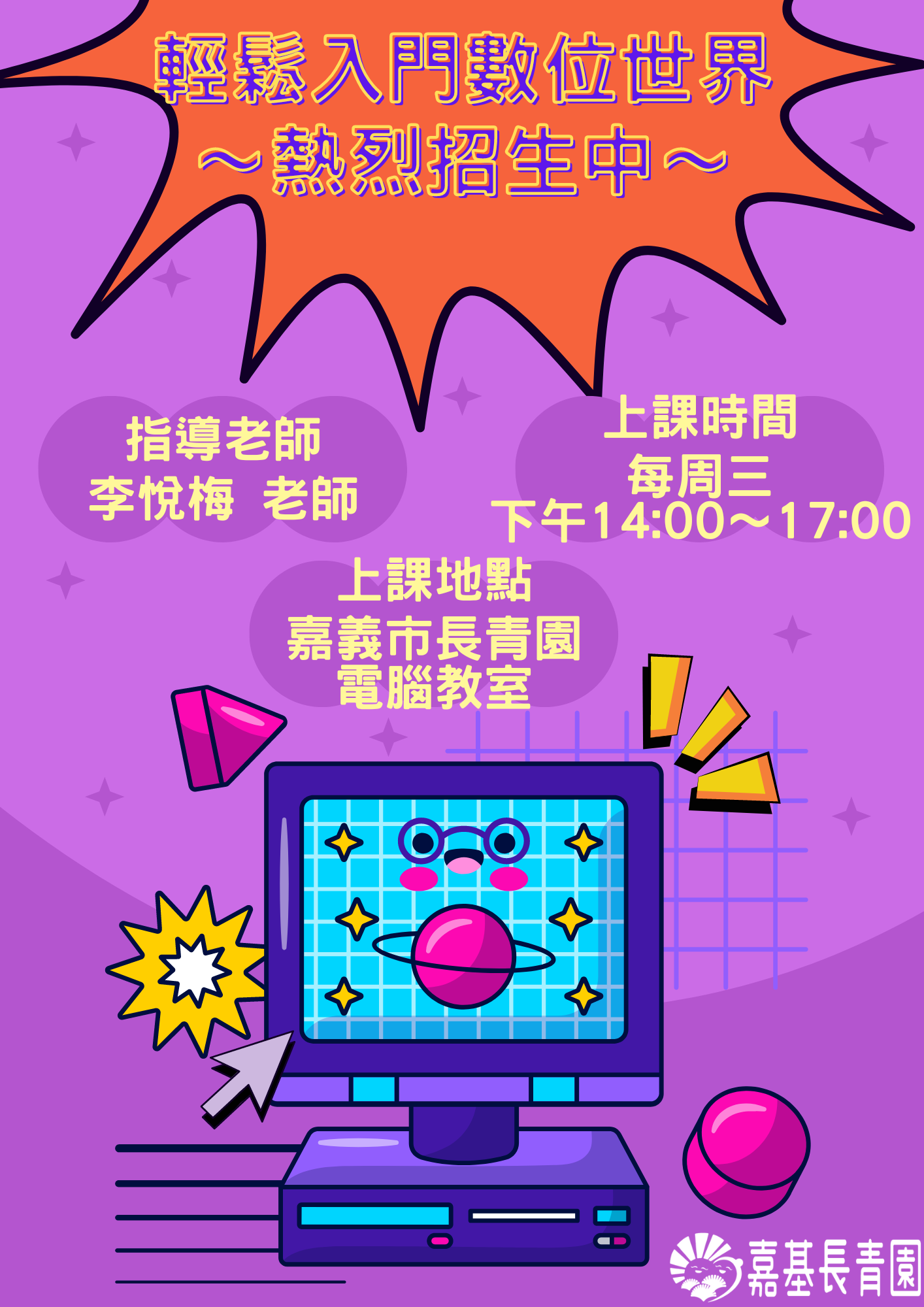 113年度長青學苑課程 輕鬆入門數位世界課 熱烈招生中😊🔎注意事項:個人報名已開始受理報名🙌請於平日上班時間 🕰上午09:00~12:00、下午14:00~17:30到長青園一樓的📍行政辦公室 繳費報名喔❗報名時須攜帶身分證正本,以及學費❗如有任何疑問,也歡迎電洽☎️05-2763636 分機117/111