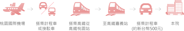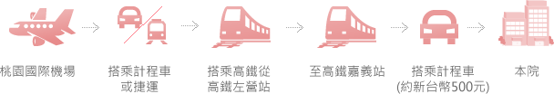 ※若您有需要,本院可以為您代訂高鐵接送服務,由指定車輛於高鐵站等候,當您抵達嘉義高鐵站時,便送您前往本院。