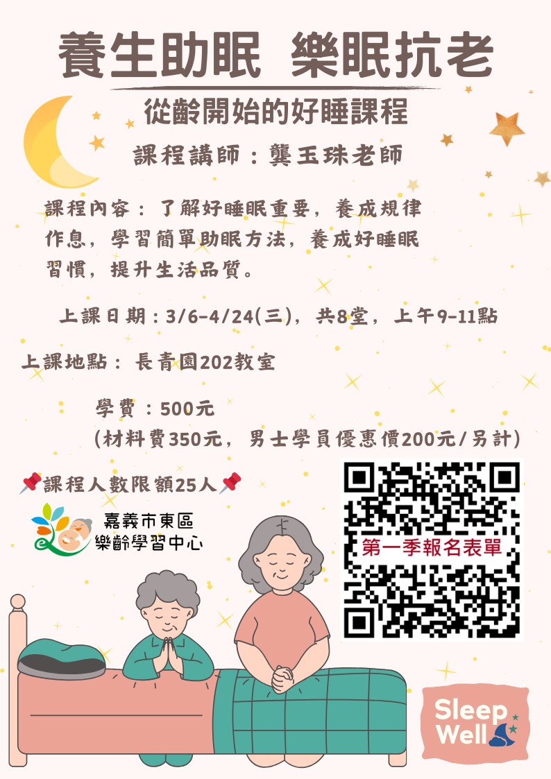 113年嘉義市東區樂齡學習中心第一季課程-養生助眠,樂眠抗老