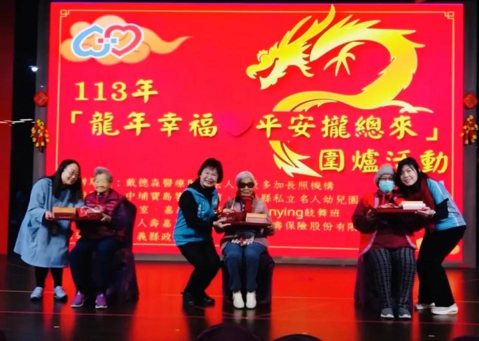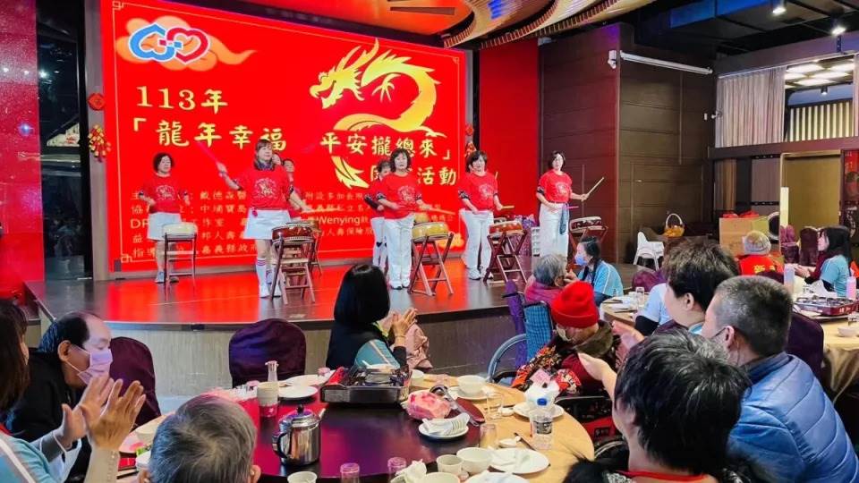 圖:為了讓嘉義縣接受送餐及居家服務的老人家、身心障礙者及其家屬在農曆年前感受團圓圍爐的氣氛,嘉義縣社會局及戴德森醫療財團法人嘉義基督教醫院25日在中埔寶島饗宴會館舉辦113年「龍年幸福 平安攏總來」圍爐,場面溫馨。(記者吳瑞興翻攝)