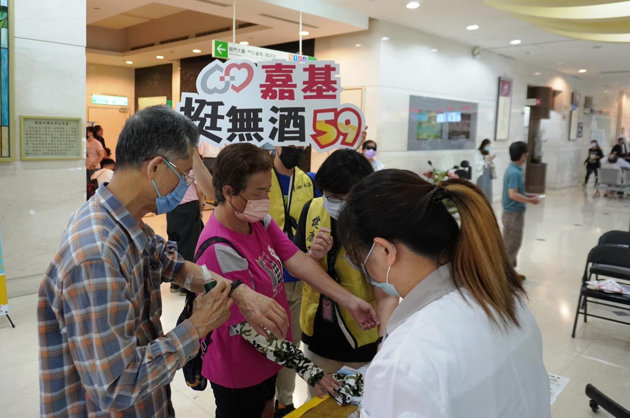為了提高公眾對飲酒對健康的認識,嘉義基督教醫院於今日(5/9)台灣無酒日在門診1樓大廳舉辦宣導活動,透過現場播放院內員工共同錄製的宣導影片外,同時進行快閃擺攤活動,向員工和民眾介紹如何透過簡單的檢測,來檢查是否患有酒精不耐症,有將近150位民眾參與,現場簡易篩檢出40位民眾具有酒精不耐症,另提供民眾現場戒酒諮詢。