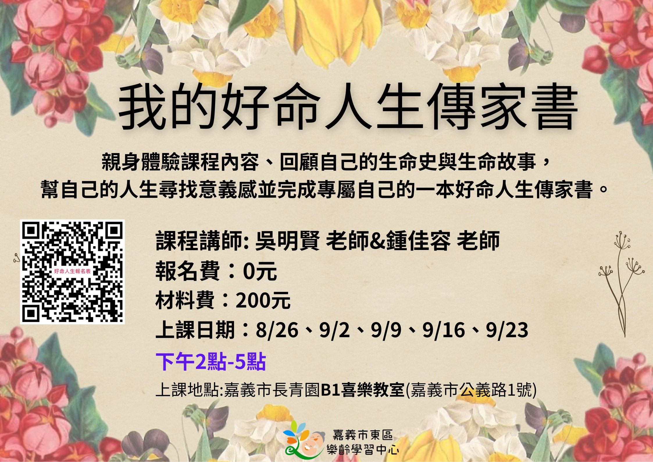 上課地點:嘉義市長青園B1喜樂教室(嘉義市公義路1號)