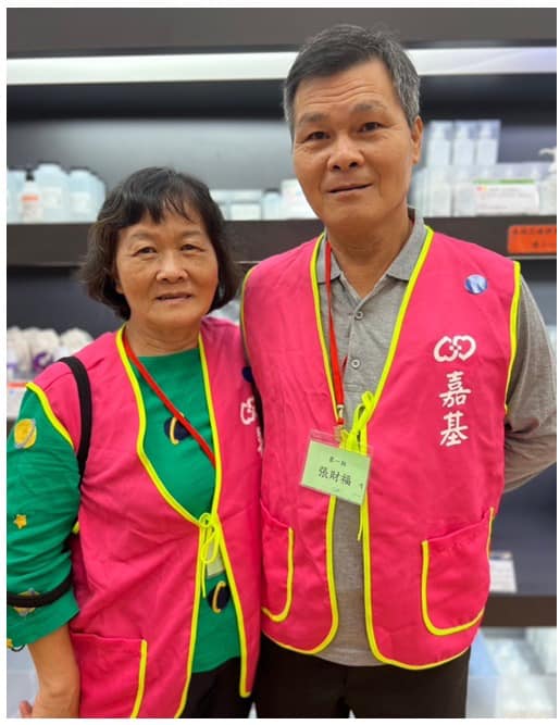 志工麗雲姐每天風雨無阻的騎著機車,協助嘉基送餐已於23年。他的丈夫~張大哥從工廠退休後,拉著他一起加入嘉基志工隊。剛開始張大哥婉拒,但看見麗雲姐每天快樂的為獨居長輩及身障者送餐,深受感動,願意加入送餐志工的行列。張大哥非常投入嘉基志工隊的服務,及認同送餐的精神,成為了志工隊的幹部。