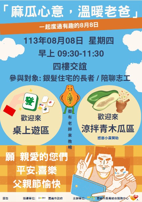 每年的父親節是屬於爸爸們的暖心時刻,尤其對於平時鮮少表達情感的男性而言,更是具有特殊意義。在獨居長者的日常生活中,缺乏豐富的社交活動和情感支持,孤獨感常常會加重,影響他們的心理健康和人際關係。為了陪伴這溫馨的時節,特別在父親節當日舉辦「麻瓜心意,溫暖老爸」活動,提升老人住宅中的社交活動,緩解獨居長者的孤獨感,旨在營造居家般的溫馨氛圍。