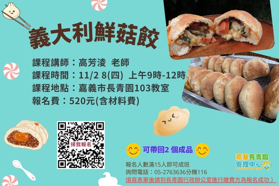 喜歡手作烘焙的朋友們,這次我們邀請到高芳淩老師帶領大家製作超美味的【義大利鮮菇餃】!