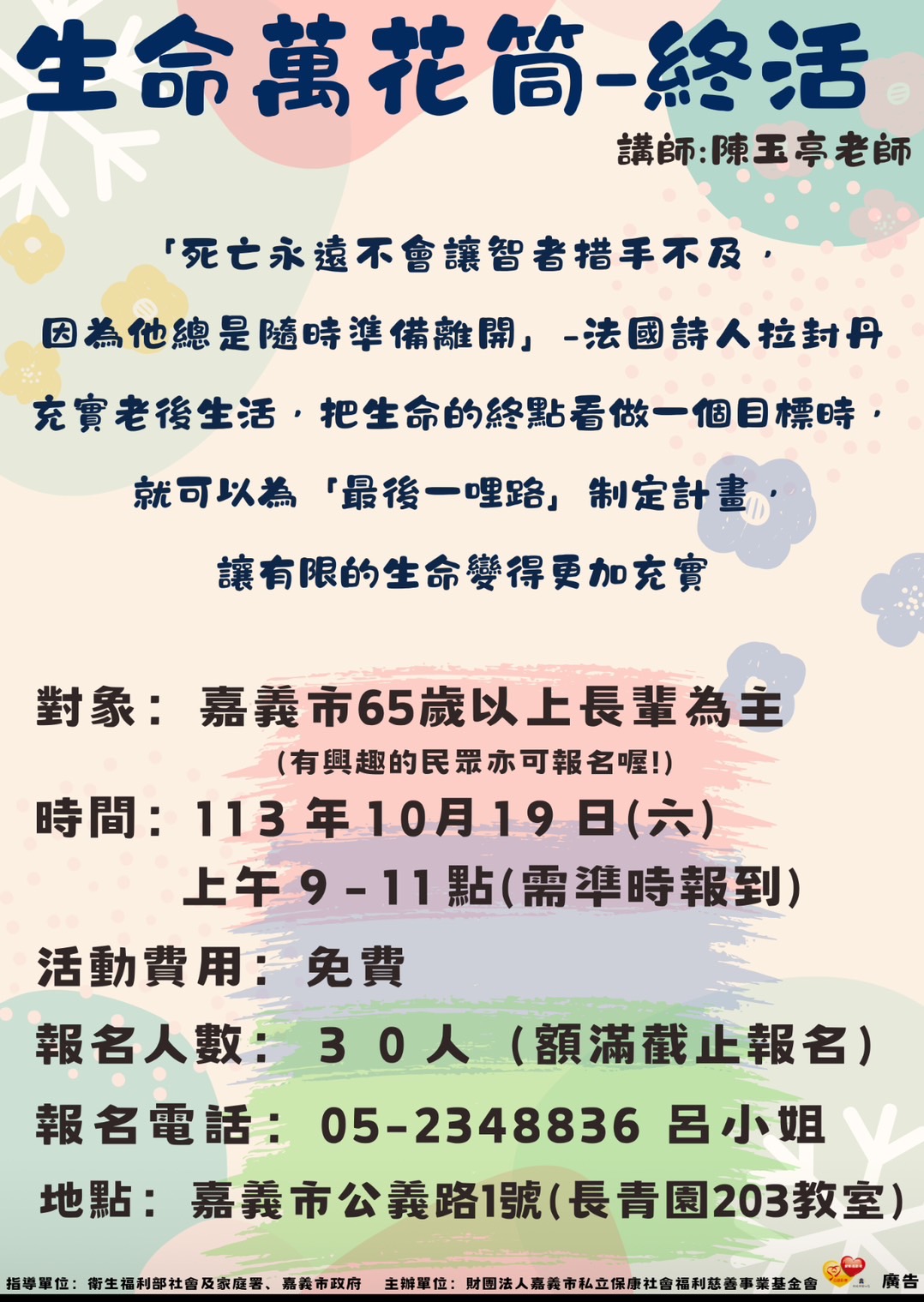 對象:嘉義市65歲以上長輩為主(有興趣的民眾亦可報名喔!)