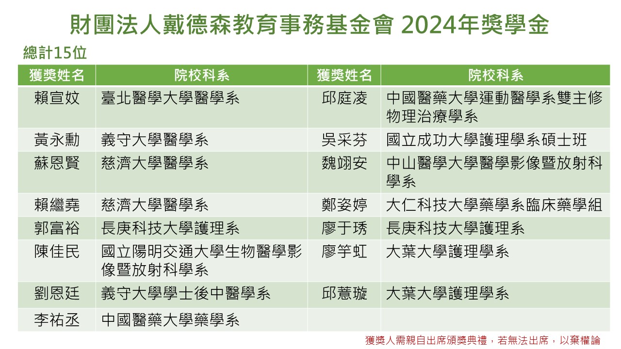 2024年【財團法人戴德森教育事務基金會】獎學金-獲獎名單