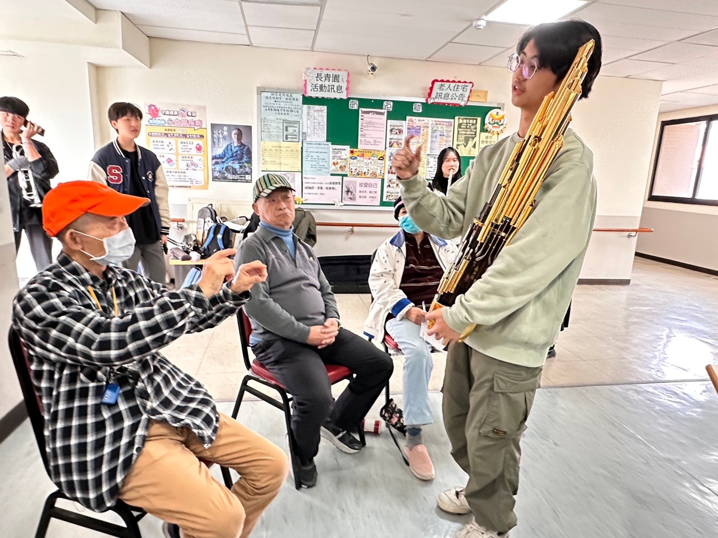 這場活動不僅讓長輩們欣賞到悅耳的管樂演奏,更讓他們第一次近距離觸摸管樂器,親身感受樂器的震動與音色,體驗音樂的魅力!有人好奇地試吹樂器,有人輕輕敲擊節奏,驚喜與笑聲在空氣中流轉。😊